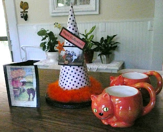 Yes, indeedy I am. Why just today our postman delivered these sweet goodies to me. This adorable witchy hat from my swap friend Molly. Thank-you, thank-you! And from my girl Shirl, (my baby girl), these cute 'Coffeemate Creamer' cat mugs, how sweet is that? Yesterday, while walking we came across this really spooky house, with giant spider, mummy and skeleton in the window, I loved it! Does anyone know what these beautiful purple berries are? So pretty. It was all topped off with this gorgeous sunset. Told you I am the luckiest.